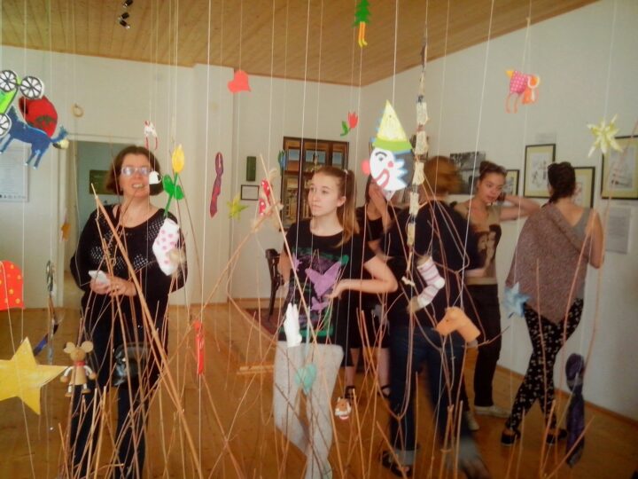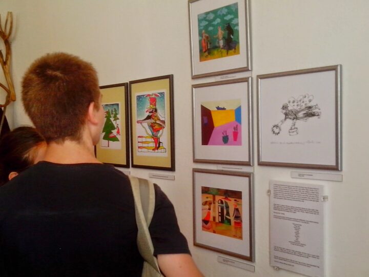 Szálkán meglátogattuk a Szálkai Művésztelepet az alapító Decsi-Kiss János kalauzolásával, akinek textilképeivel is megismerkedtünk a helyszínen.