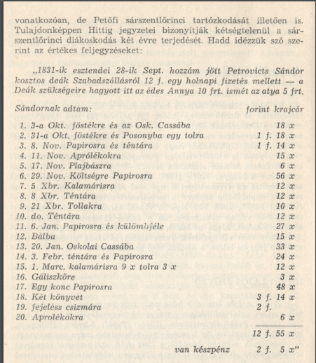 (Forrás: Csepregi Béla: Petőfi Sárszentlőrincen)