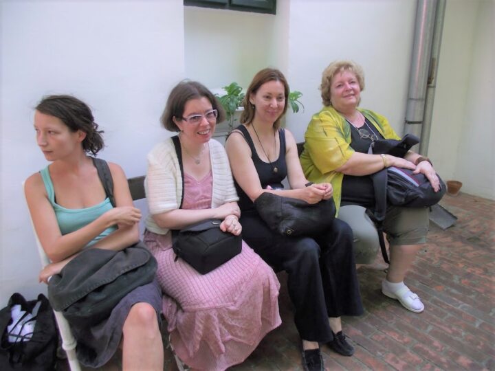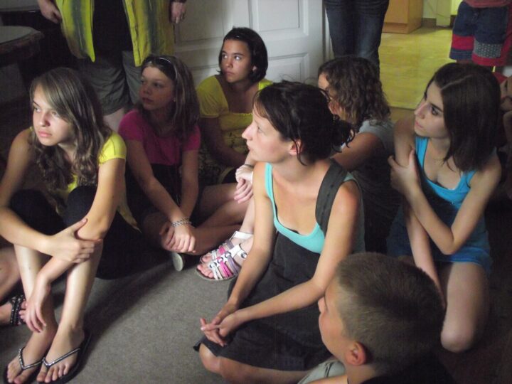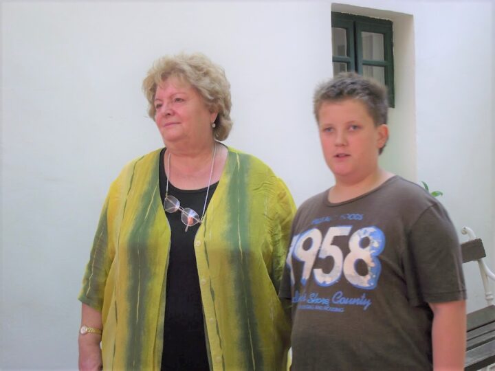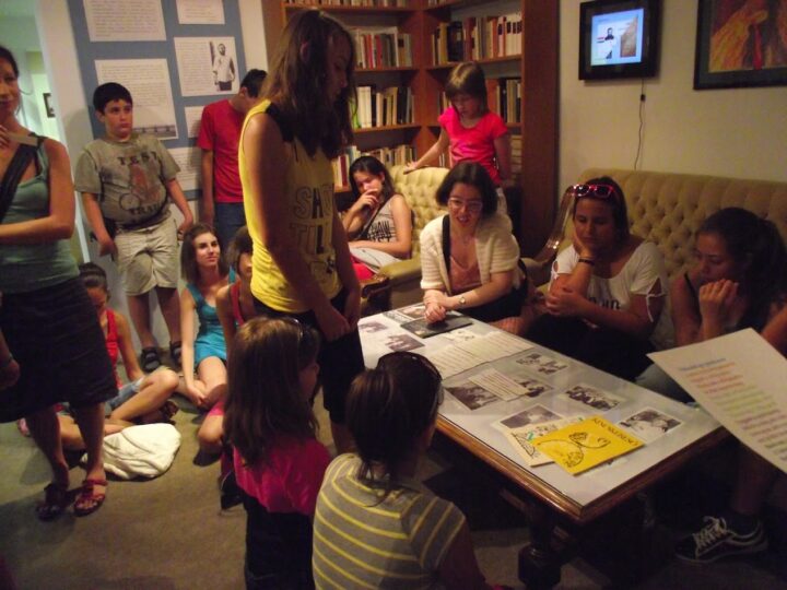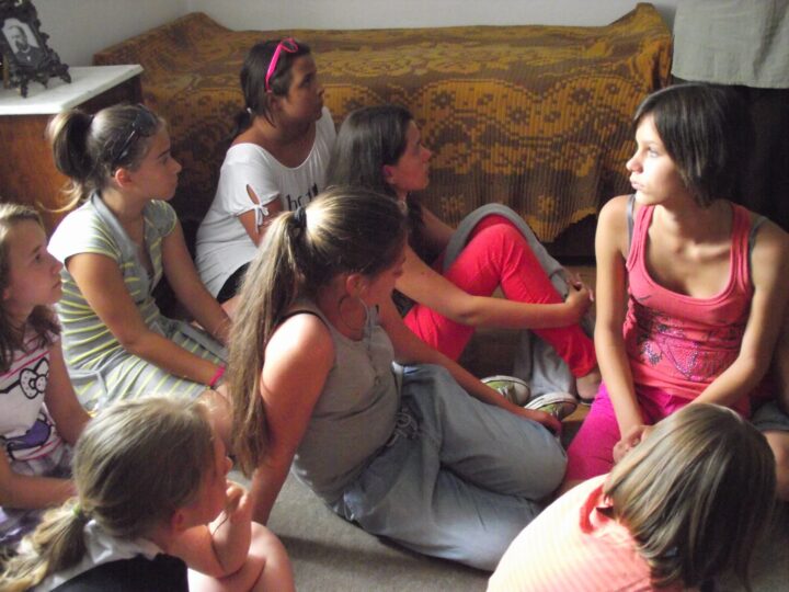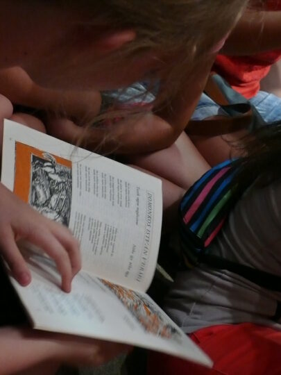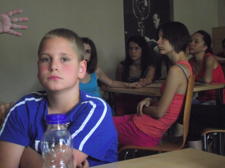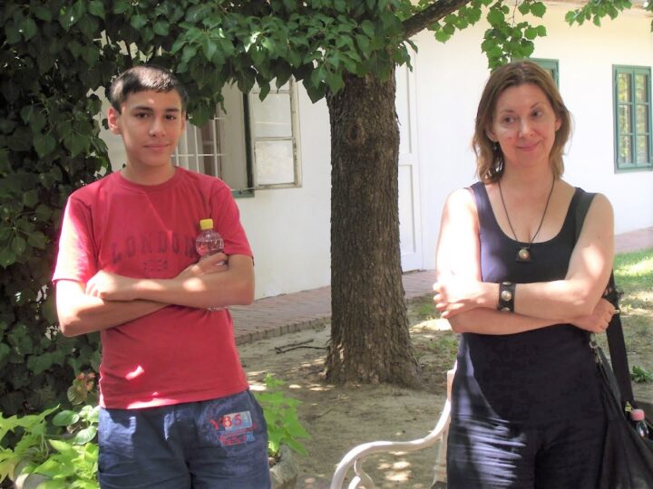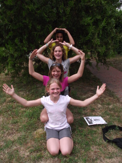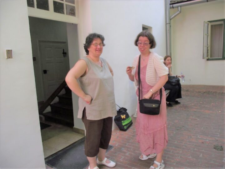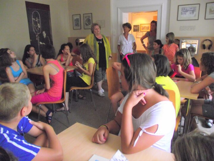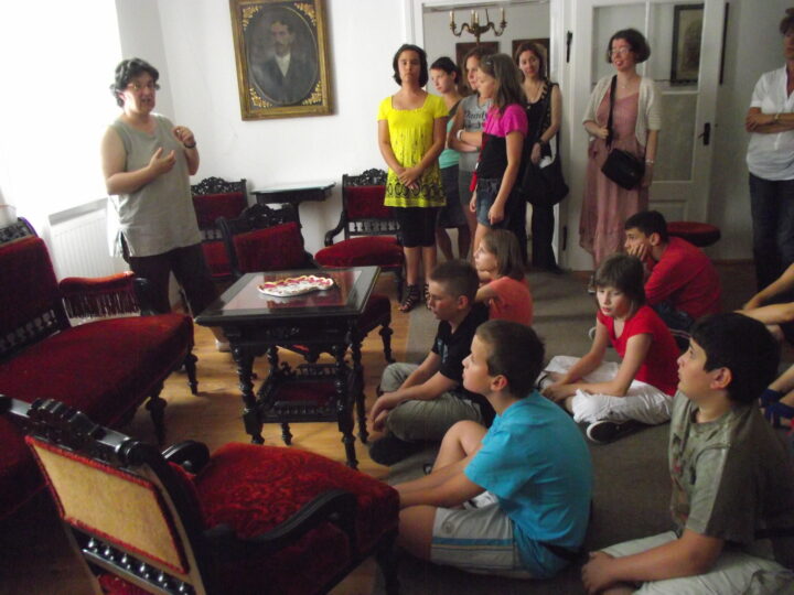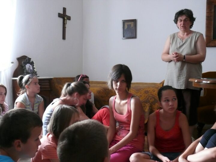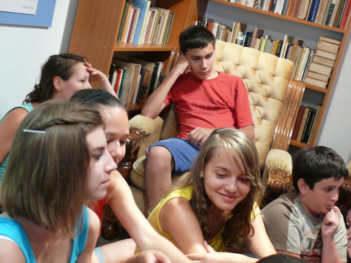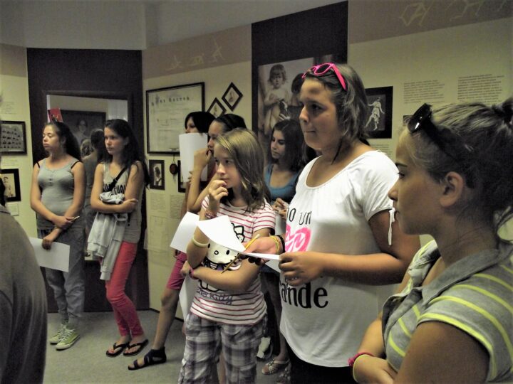 2. A séta után a Babits-ház udvarán találkoztak a szekszárdi és szegedi táborlakók. A gyerekek itt még külön-külön csoportosulnak.