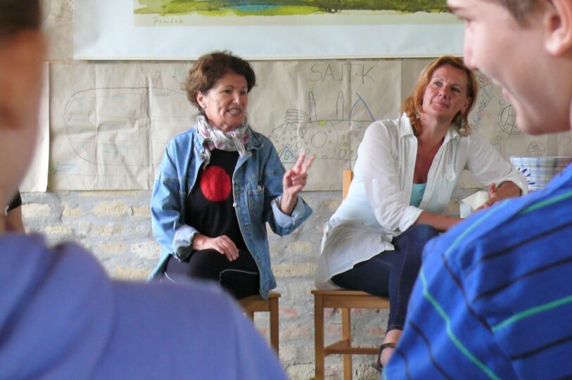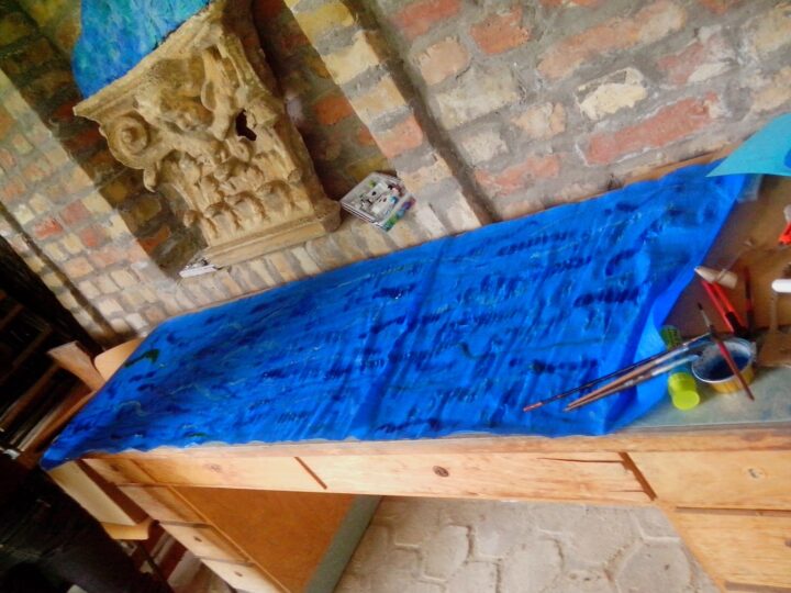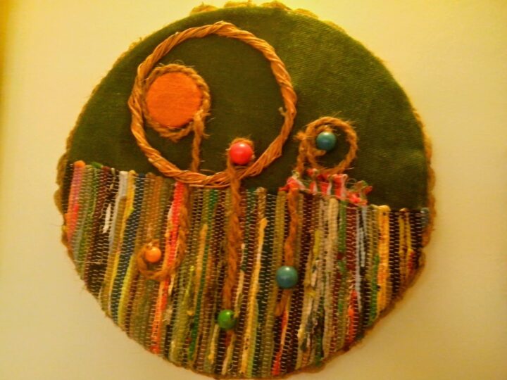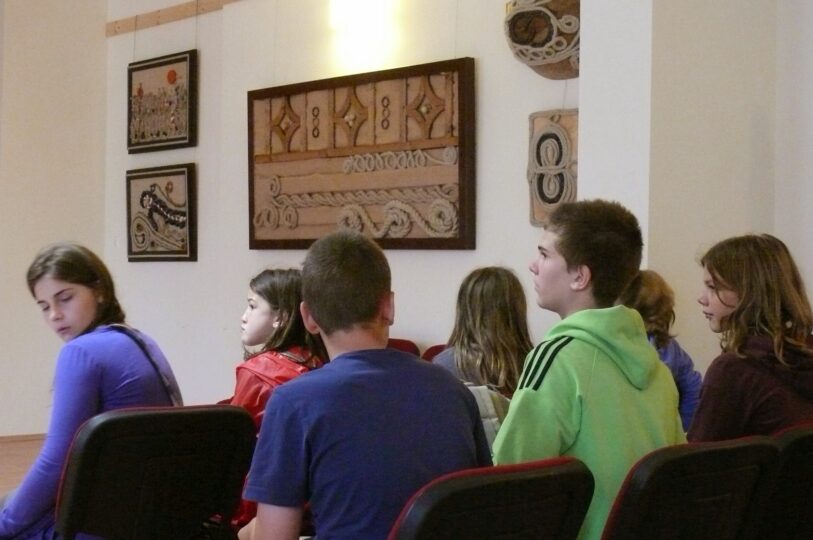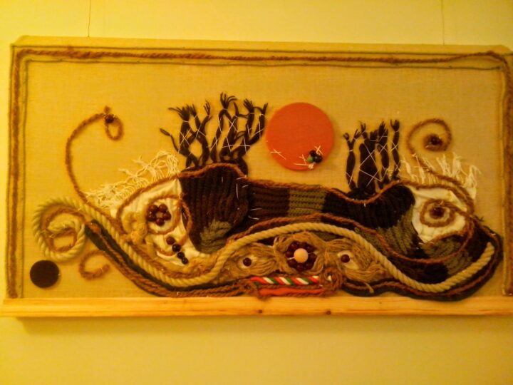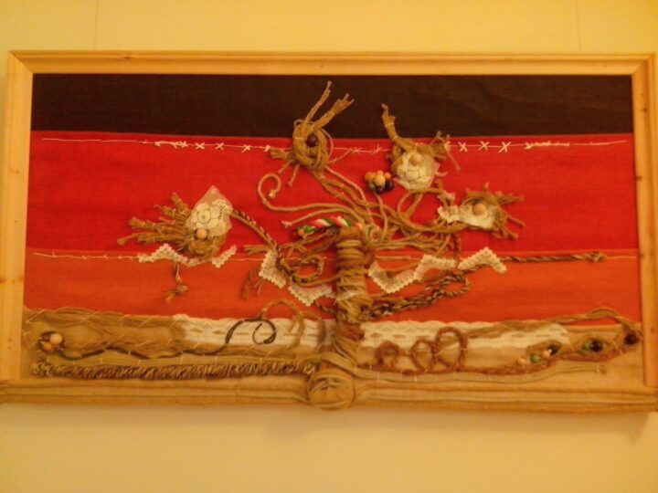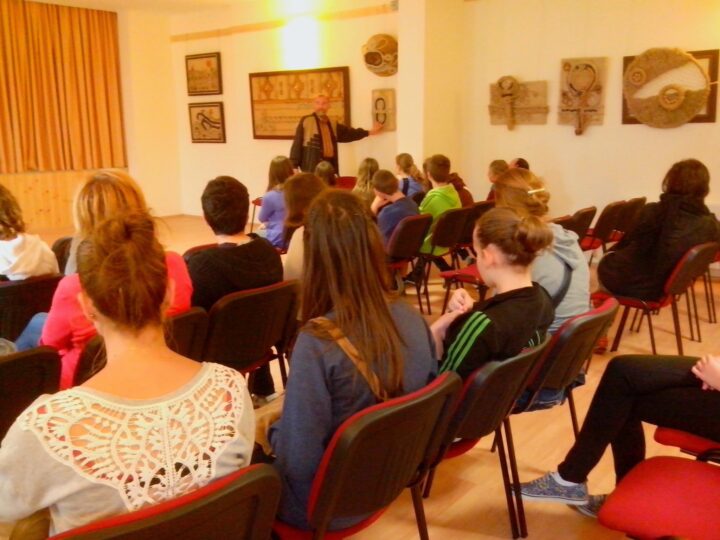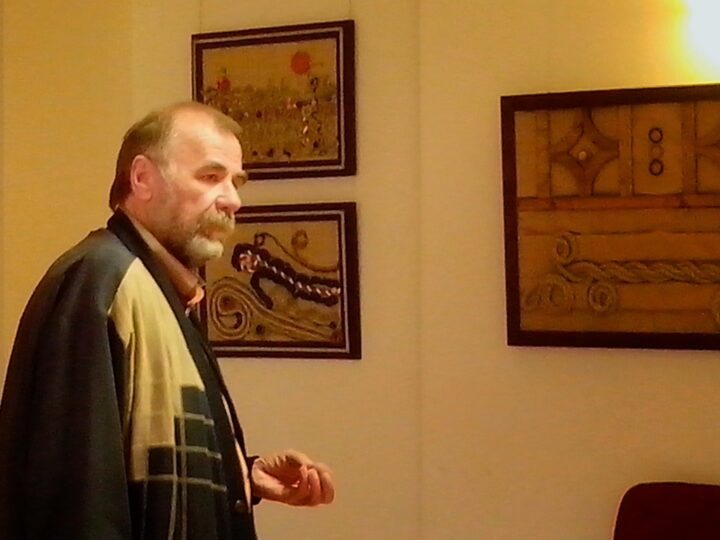 Délután a SZÁLKAI MŰVÉSZTELEPRE látogattunk el, hogy Tolna megyei alkotókkal ismerkedjünk. Idén DECSI KISS JÁNOS újságíróval és képzőművésszel találkoztunk, akinek textilképeit tekintettük meg. A kiállításon a művész személyesen kalauzolt bennünket.