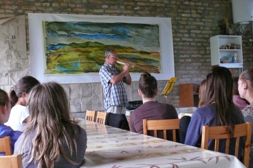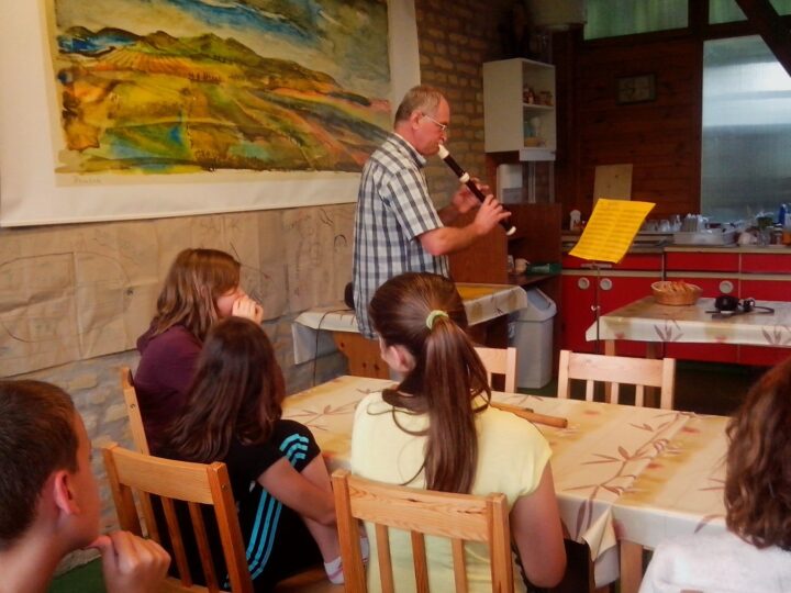 Vacsora után meglepetés zenei koncertben volt részünk. Házigazdánk, a zenész DOBCSÁNYI LACI bácsi a furulya hangjának szépségét és sokoldalúságát mutatta meg nekünk.