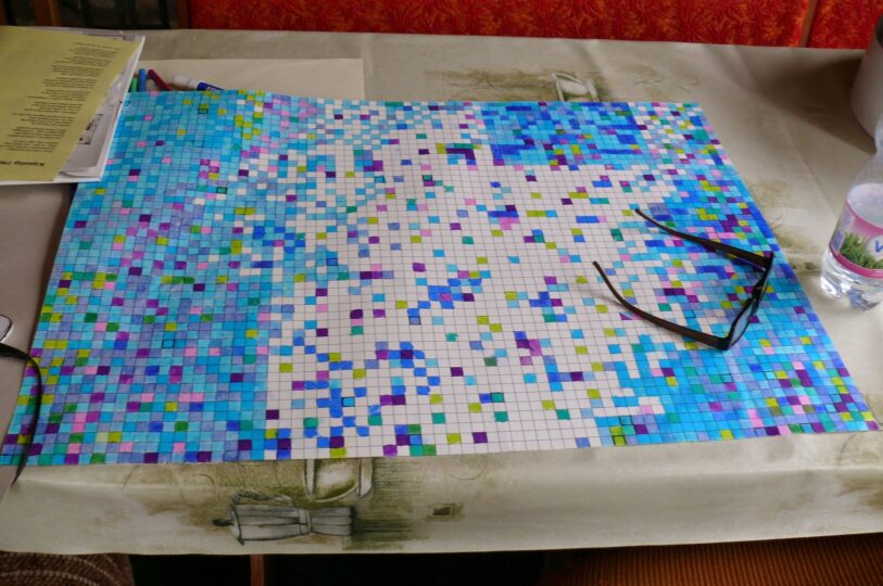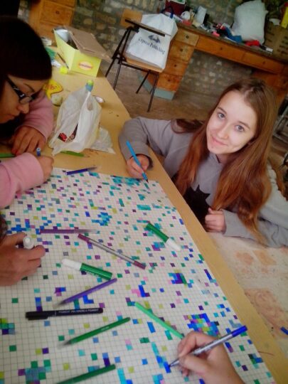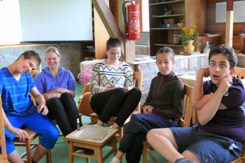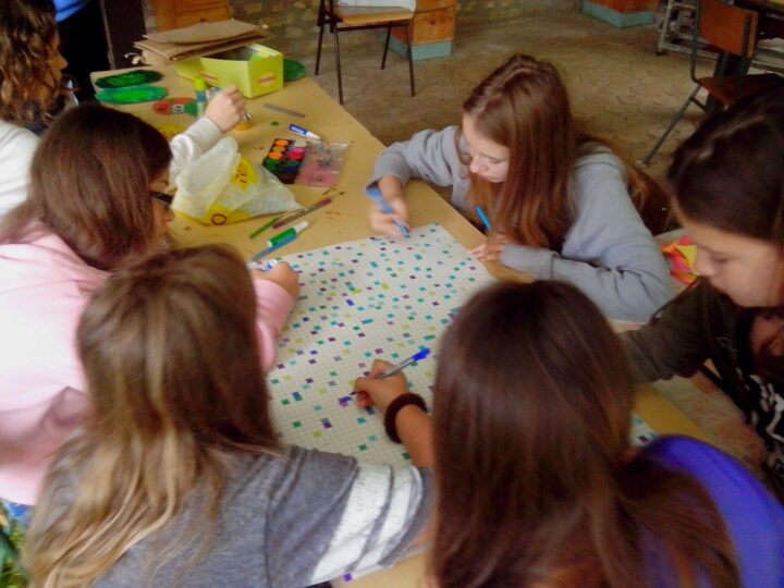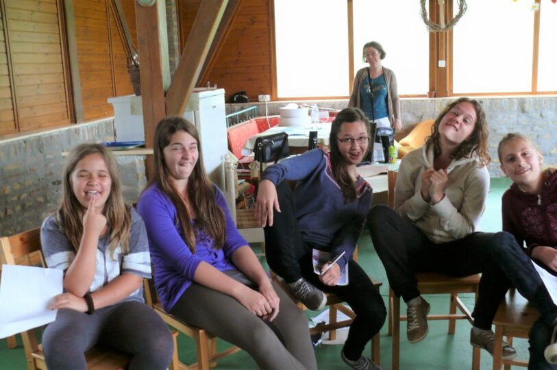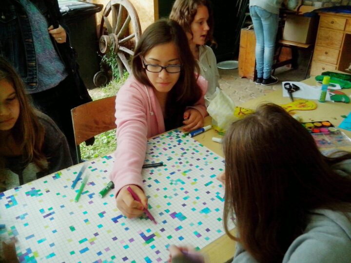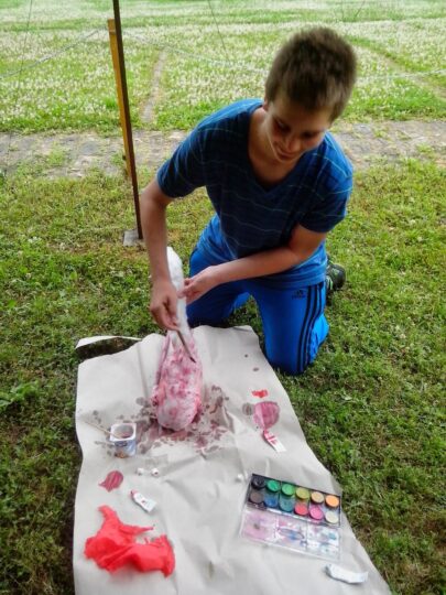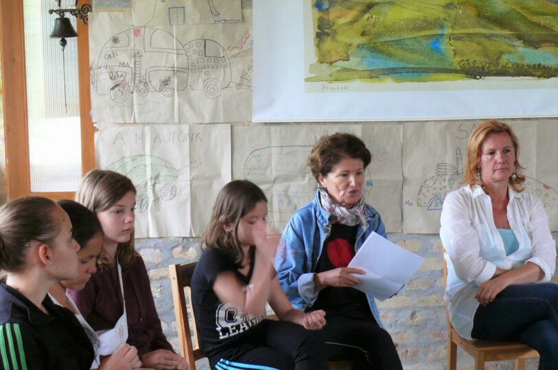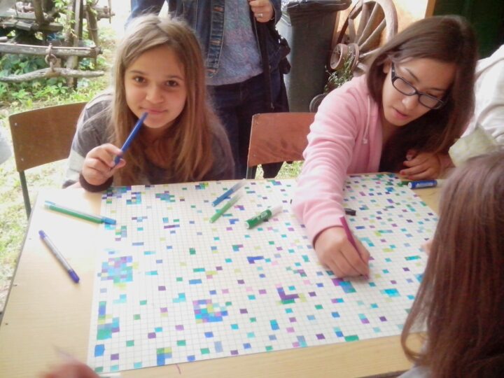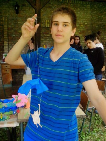 Az ANIMÁCIÓ és BÁBFOGLALKOZÁSON folytatódott a tegnap elkezdett munka. Zalán Tibor Ősz című verse is előkerült Orosz Andrea néni már-már grafikai műalkotásszámba menő írásával. Versátirat készítésével képi látásmódunkat lehetett csiszolni, amelyben az ősz elemeit a nyár vagy akár a többi évszak képeivel helyettesítettük, sőt ezzel még a versírást is gyakorolhattuk.