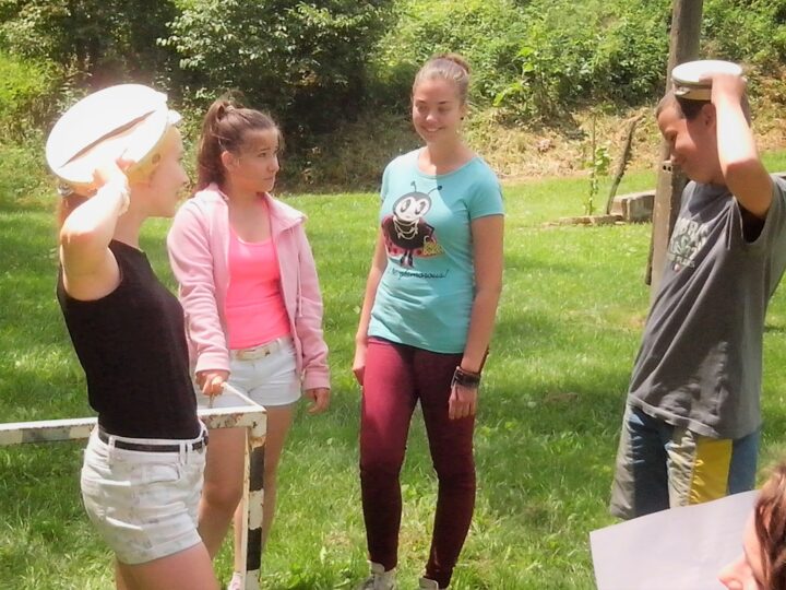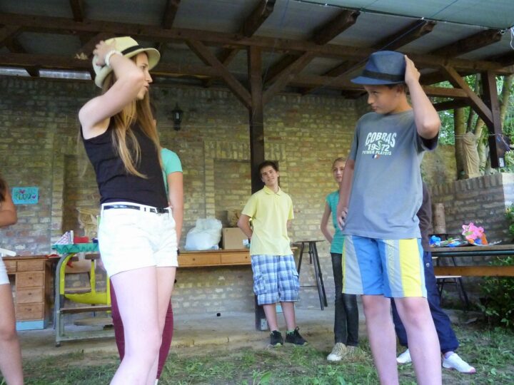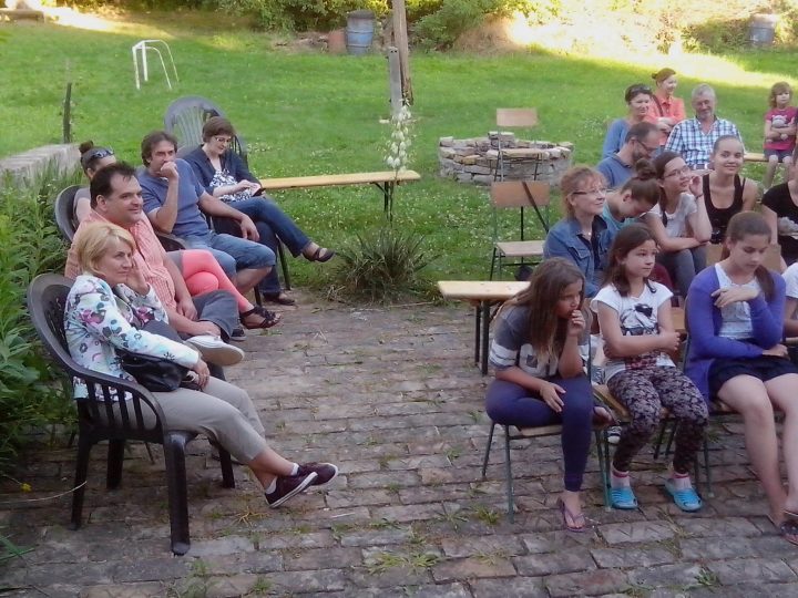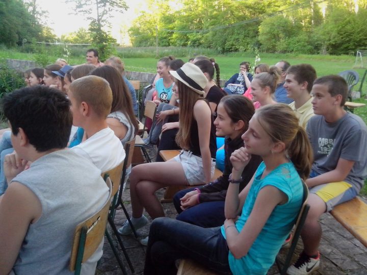 Vacsora után eljött a nagy pillanat: Megmutattuk szüleinknek, tanárainknak, vendégbarátainknak, hogy mit tanultunk a héten. Fotók a csoportbemutatókról: